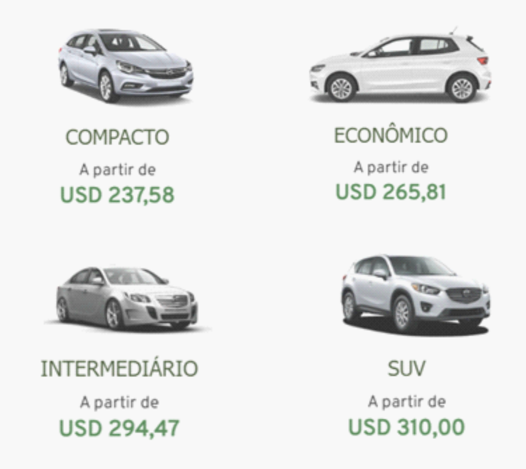 *Valores sujeitos a disponibilidade de veículo, bem como alteração de valores no ato da reserva.