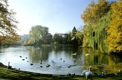 Relaxe às margens de uma das duas lagoas do parque, cheias de patos e cisnes. Desfrute de um delicioso piquenique nos gramados ou use uma das churrasqueiras na parte norte do parque.