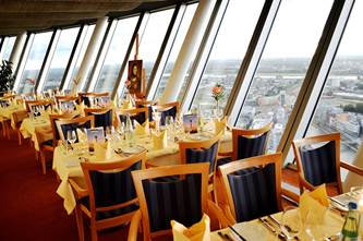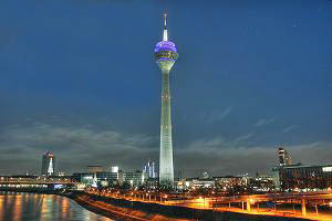A Torre Reno (construída entre 1979-1982 pelo arquiteto H. Deilmann) tem 240,5 metros de altura e a 172,5 metros tem um restaurante, que gira uma vez a cada hora em torno do seu próprio eixo. O restaurante tem o sistema self-service e uma plataforma de observação a partir da qual você pode desfrutar de uma vista deslumbrante de Dusseldorf, como: Mídia Porto, Cidade Velha, Hofgarten, Königsallee e do Reno com as suas pontes. Com tempo bom, a vista se estende até a Terra Bergisches e Colónia.