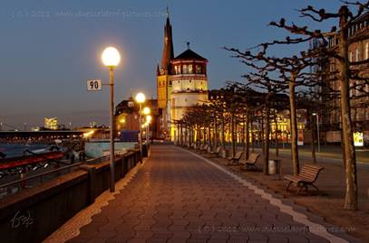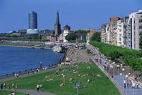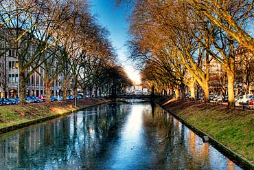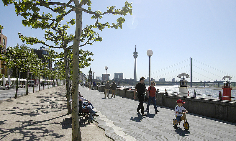 A Promenade do Rio Reno é um enorme e agradável calçadão somente para pedestres e liga o Centro Histórico à moderna área do porto e é um popular ponto de encontro da cidade. É ideal para caminhar, andar de bicicleta, descansar em suas áreas gramadas, parar nas charmosas cafeterias e curtir o pôr do sol e o movimento dos barcos no rio. O calçadão também é palco de vários eventos, especialmente no verão. Participe de um dos passeios de barco de uma hora, que partem da Burgplatz. Durante o passeio, você poderá saber um pouco mais sobre a importância do Rio Reno para Düsseldorf, além de toda a história e arquitetura do Centro Histórico. Enquanto estiver na Burgplatz, visite o Schifffahrt-Museum para descobrir os séculos de história de navegação do Rio Reno. Durante o verão, o calçadão ganha vida com uma infinidade de eventos culturais. No Dia do Japão (Japantag), comemore a cultura japonesa em meio à maior comunidade japonesa da Alemanha. Durante esse evento, você poderá assistir a apresentações de artes marciais, concertos e queimas de fogos. Outros eventos realizados no local incluem as comemorações durante o solstício de verão e o torneio de vôlei de praia. Para toda a programação de eventos, visite o site do Düsseldorf Tourismus.